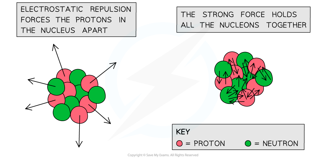 👉 즉, 강한 핵력은 쿨롱 반발력보다 100배 이상 크기 때문에 원자핵을 안정적으로 유지할 수 있음.